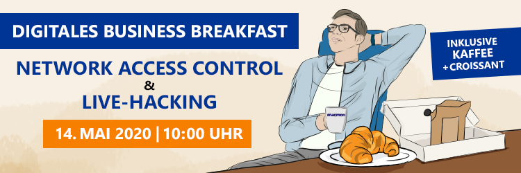 Melde dich noch heute bei einem Live-Hacking-Event unseres Partners macmon an. Erlebe wie wichtig Netzwerkzugangskontrolle ist. Ein gemeinsamer Austausch und praxisorientierten Demonstration mit Experten der Branche. Melde dich an und du bekommst für diesen Event dein persönliches Frühstückspaket bestehend aus wiederverwendbaren Coffee-Brewer und Croissant von macmon zugesendet.