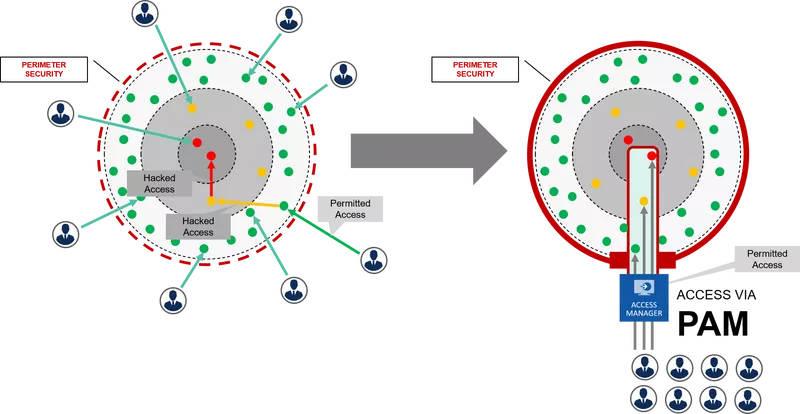 PAM minimiert das Risiko von internen und externen Bedrohungen, indem es den Zugriff auf vertrauliche Informationen und Systeme auf eine Gruppe von autorisierten Benutzern beschränkt. Diese Einschränkung minimiert das Risiko von Datenschutzverletzungen, Cyberangriffen und Insider-Bedrohungen.